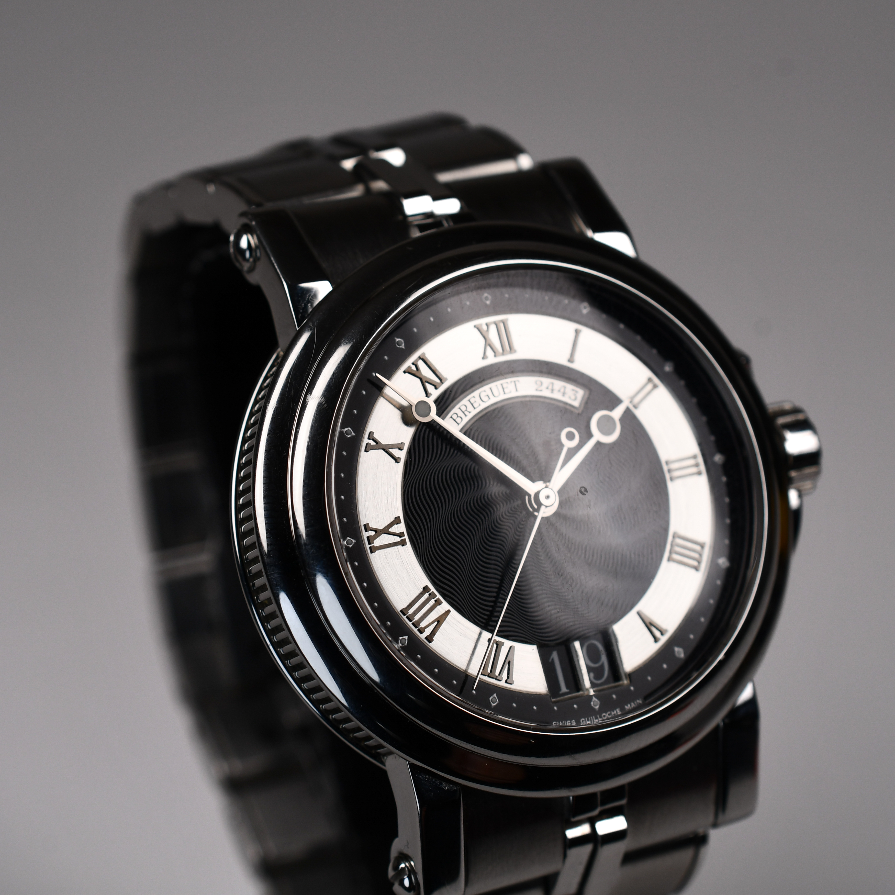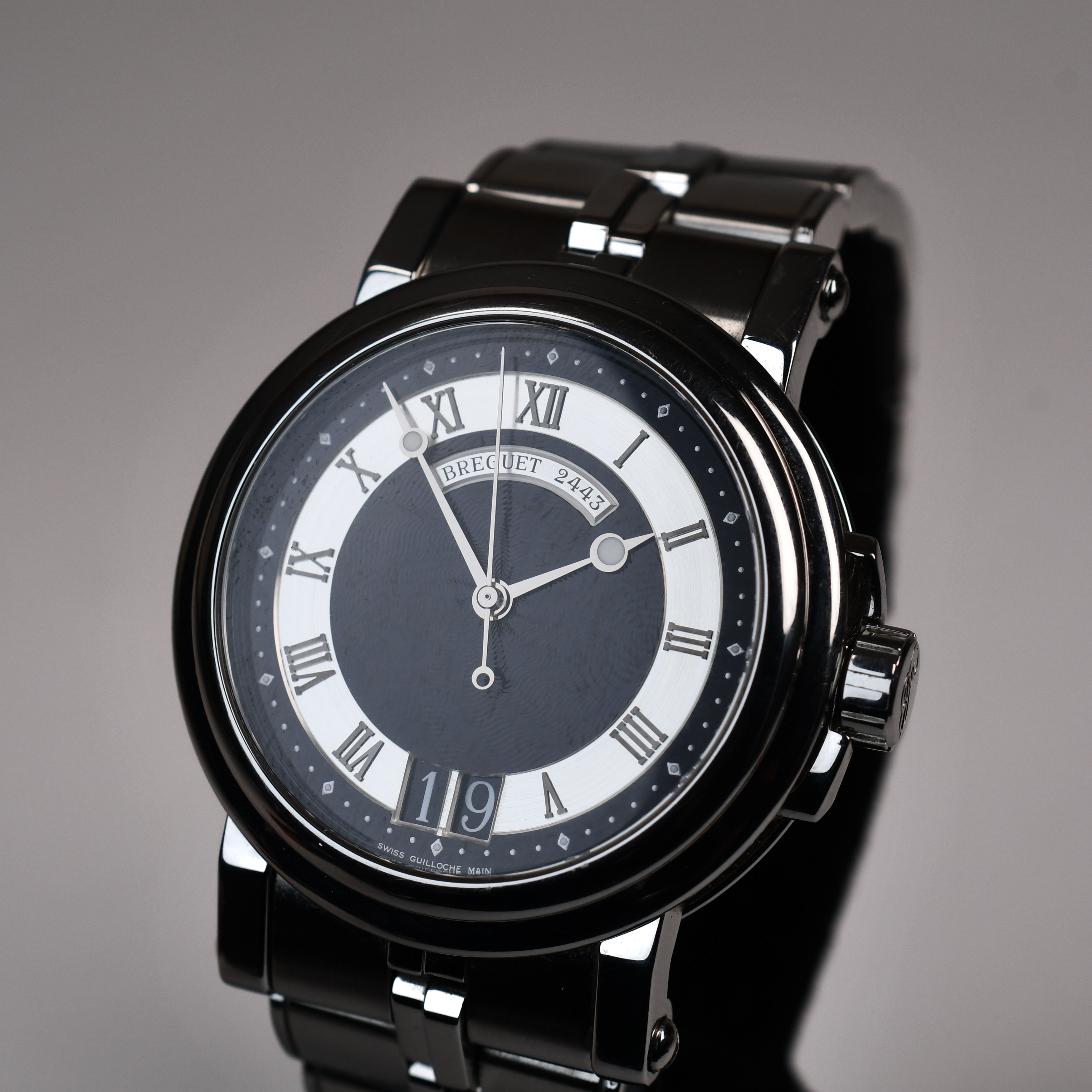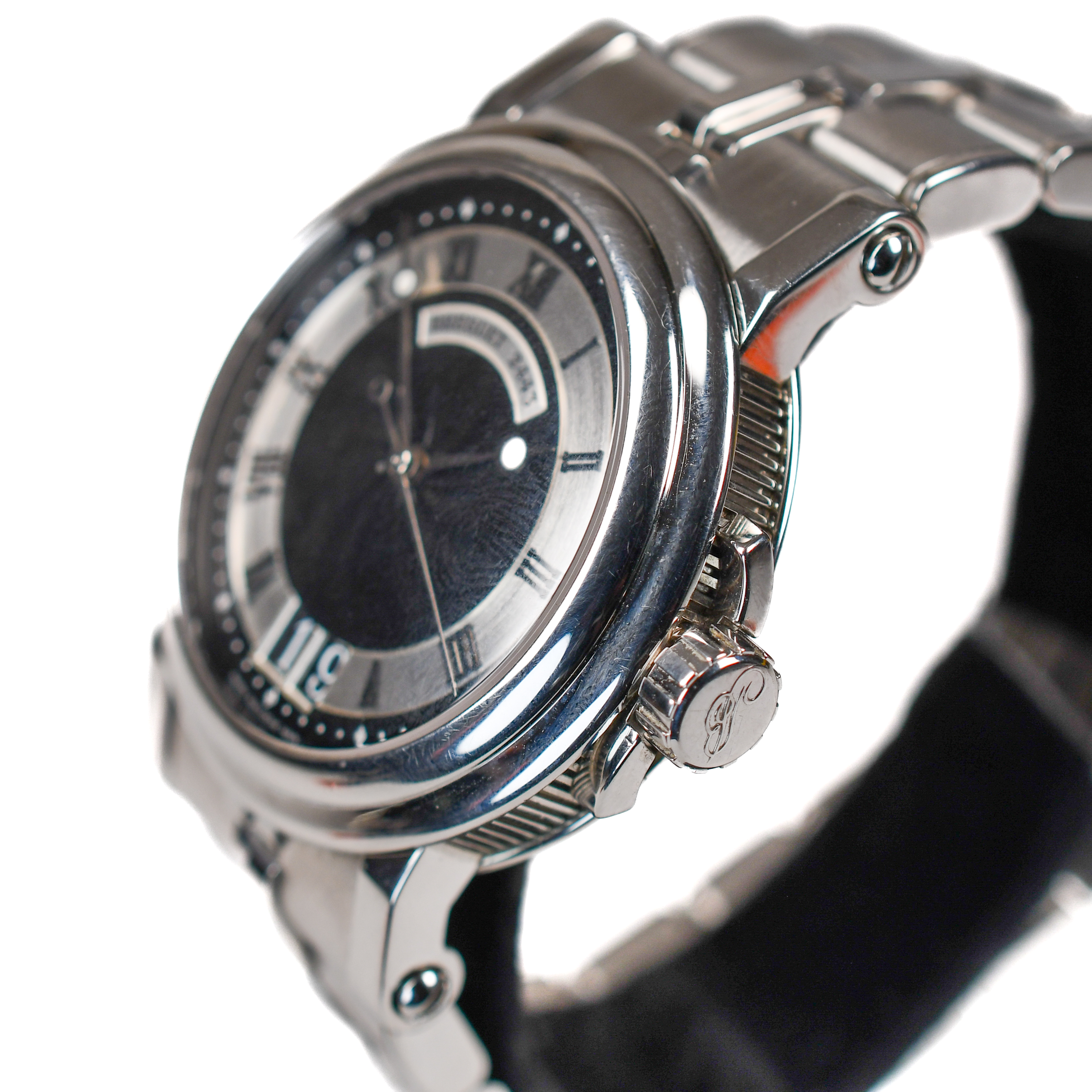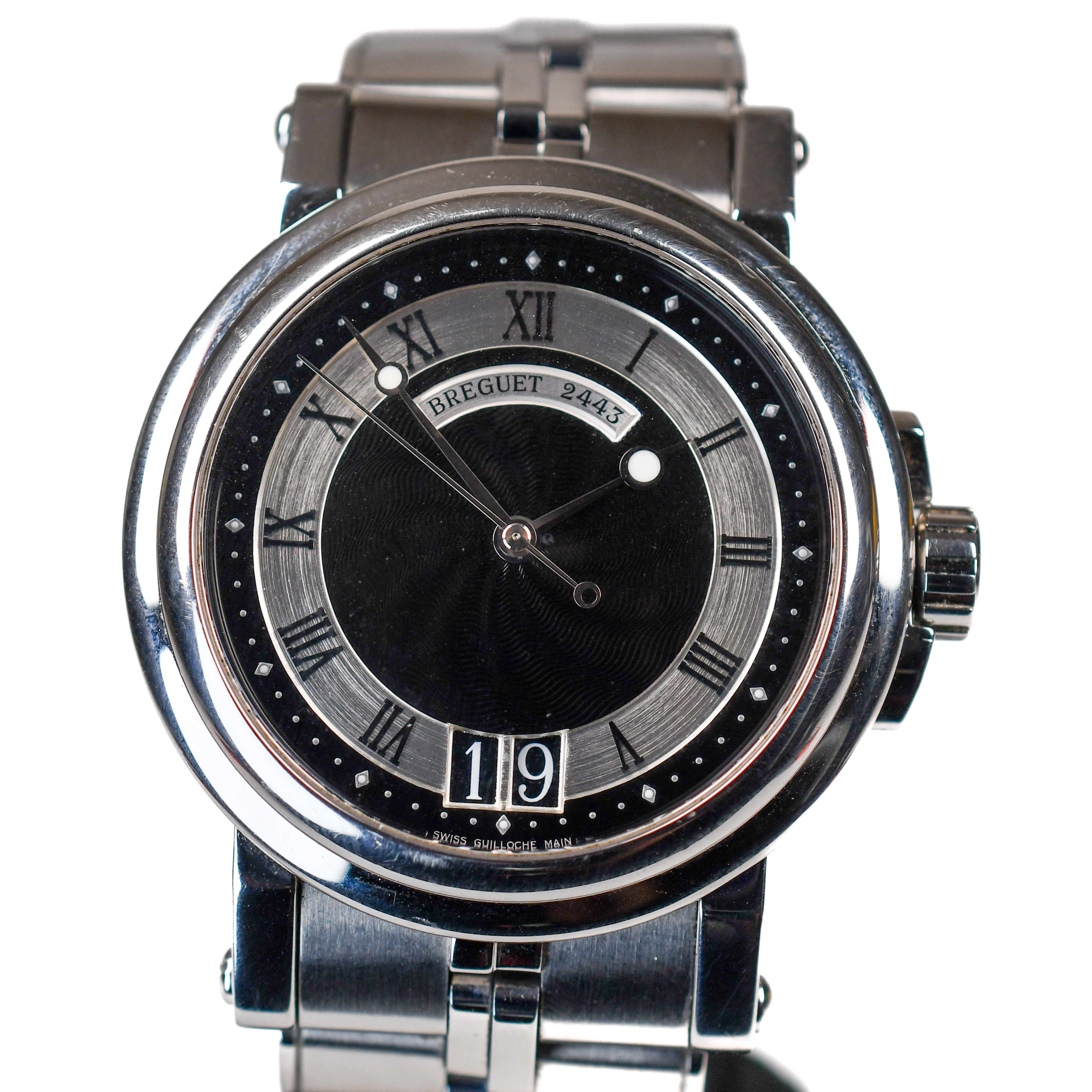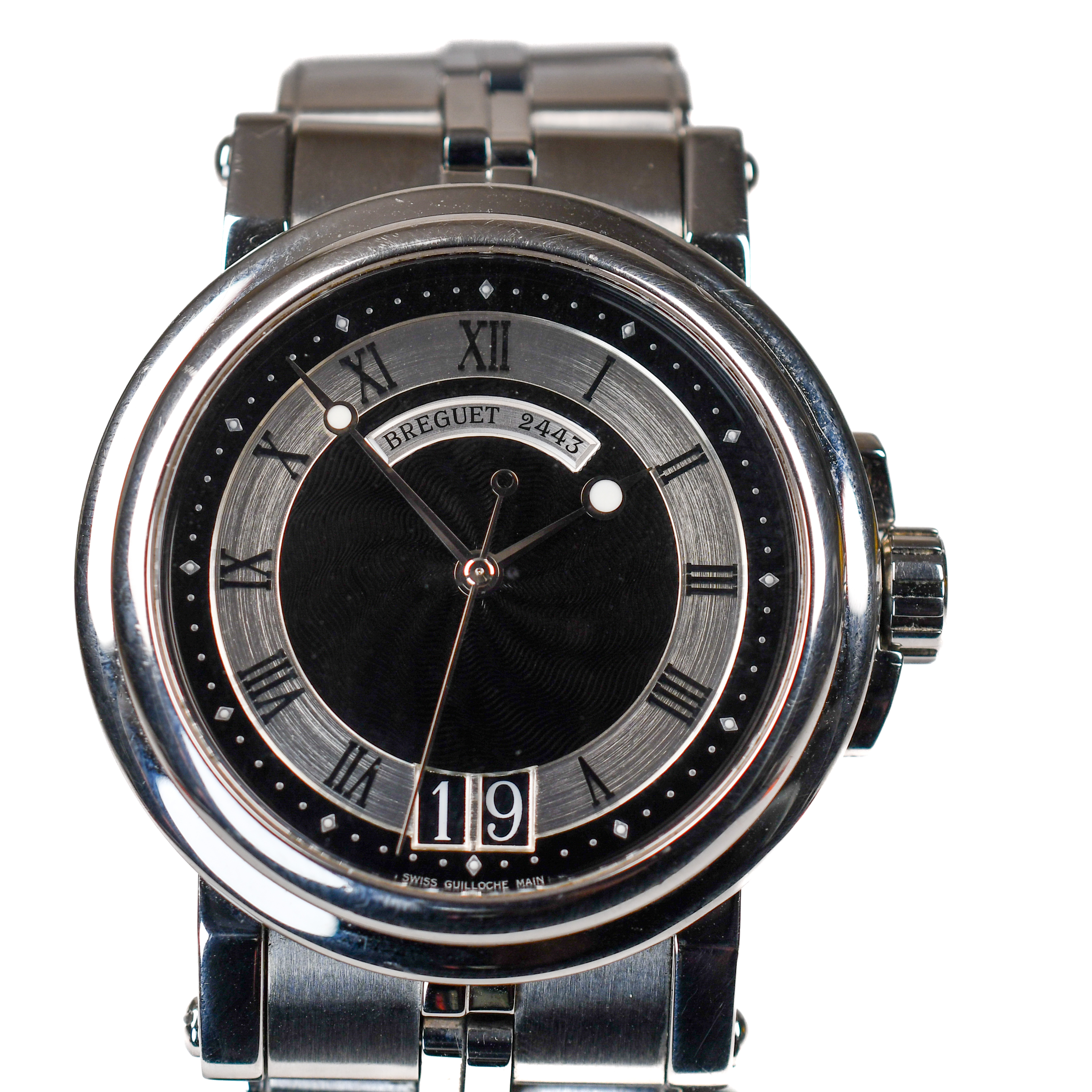 For auction is a Breguet Marine 5817ST/92/SV0 Black Dial Big Date service papers. The Good: 1. The Marine Big Date is a modern classic; one of the best modern Breguet and a watch that works great for sport or dress, the black dial especially so. 2. Comes on the desirable bracelet which really changes the whole feel of this watch. 3. Had a service by Breguet in 2021 and working/functioning correctly, -3 seconds per day and +278 amplitude. The bad: 1. No original box or papers just a service box and card. 2. Bracelet will only fit up to a 7.1" wrist.