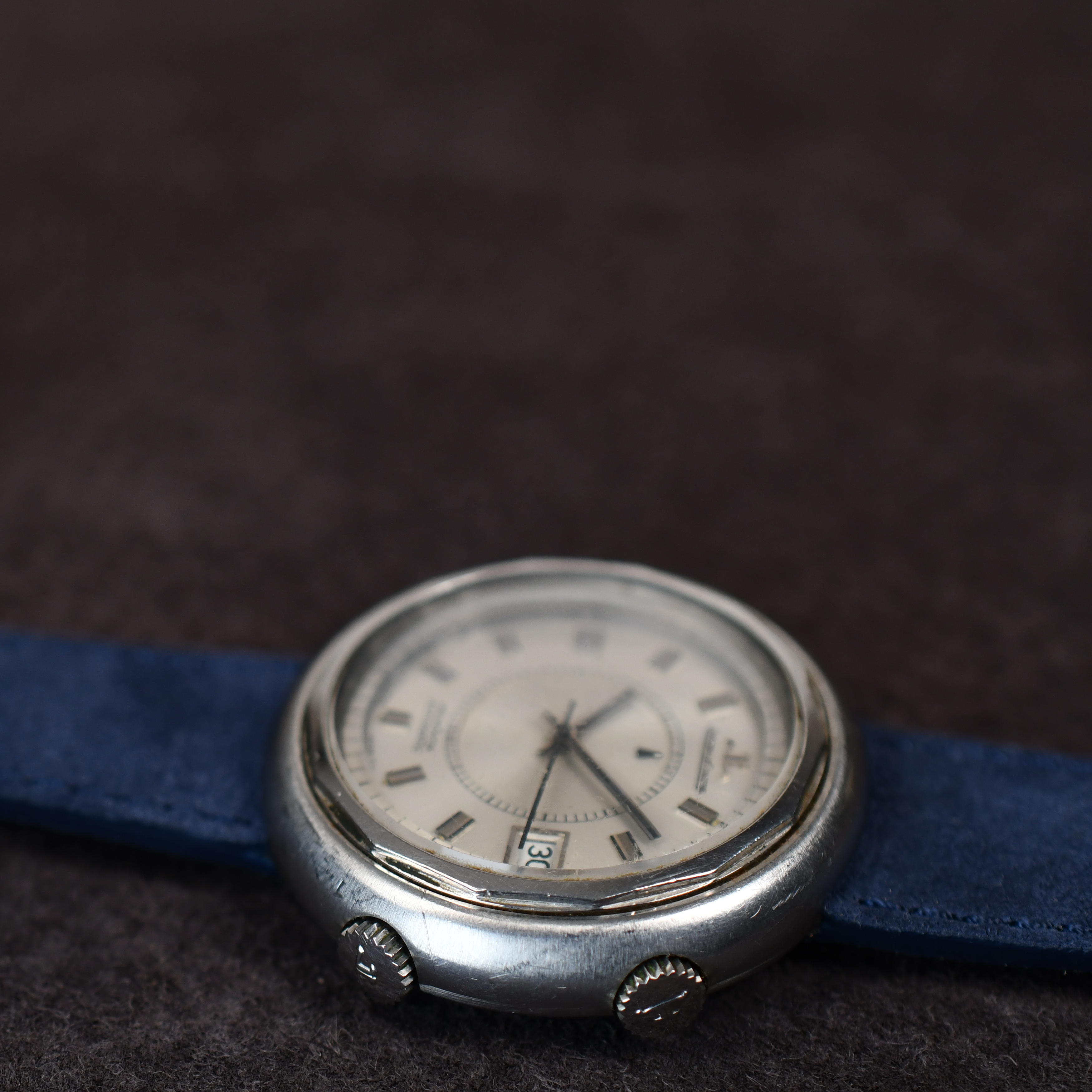 JLC Jaeger Snowdrop Memovox Speedbeat E877 1970s 43mm UFO Alarm Rare Steel Auto