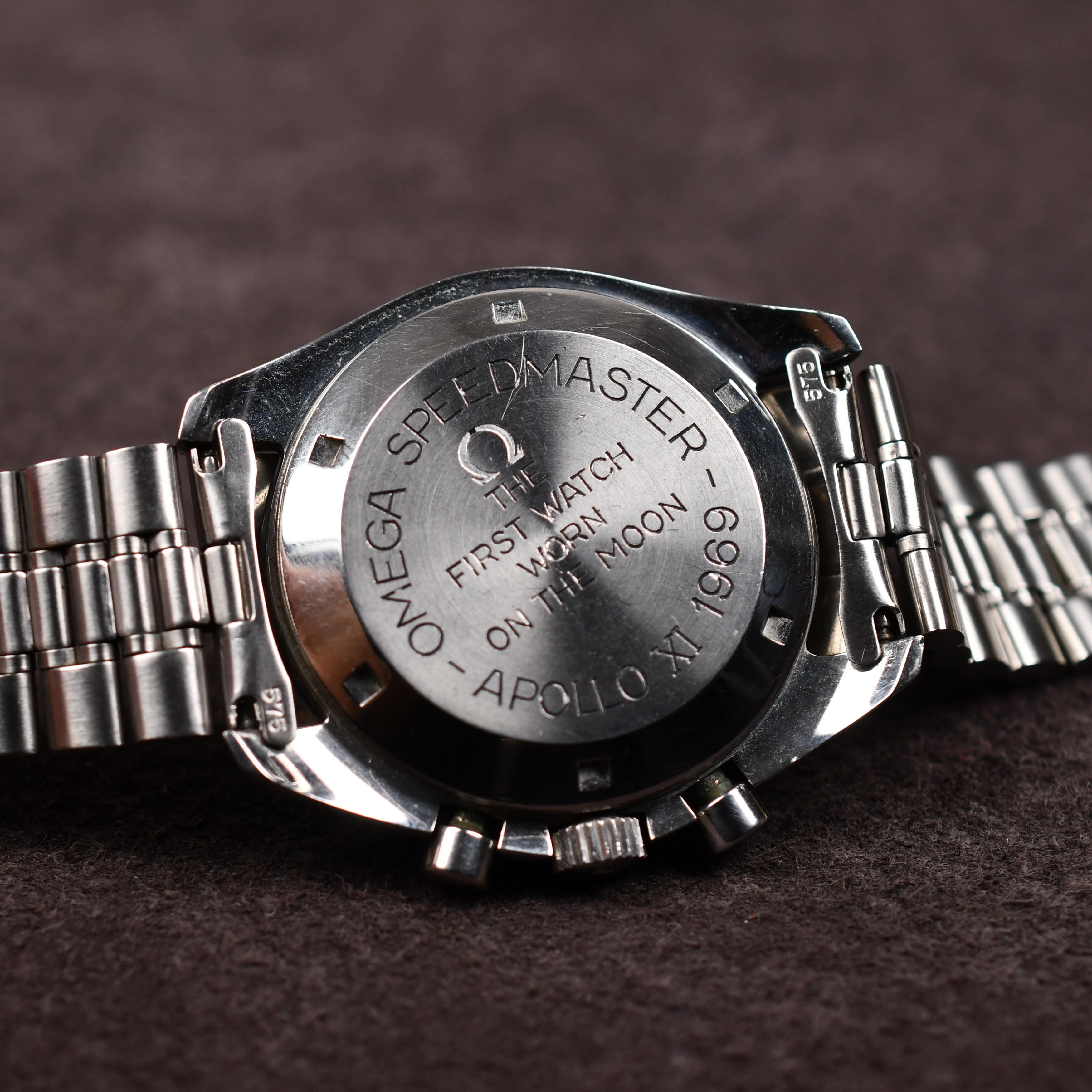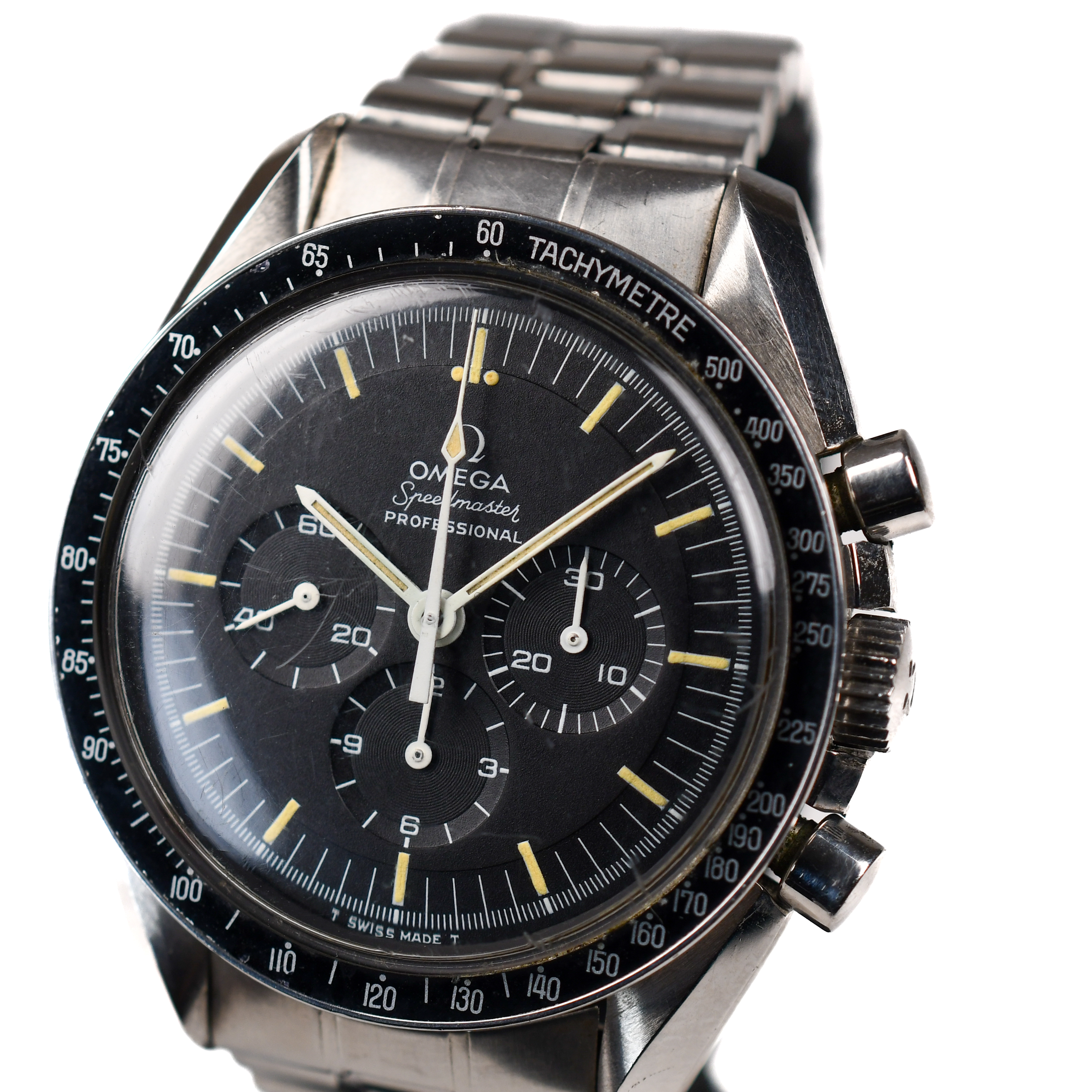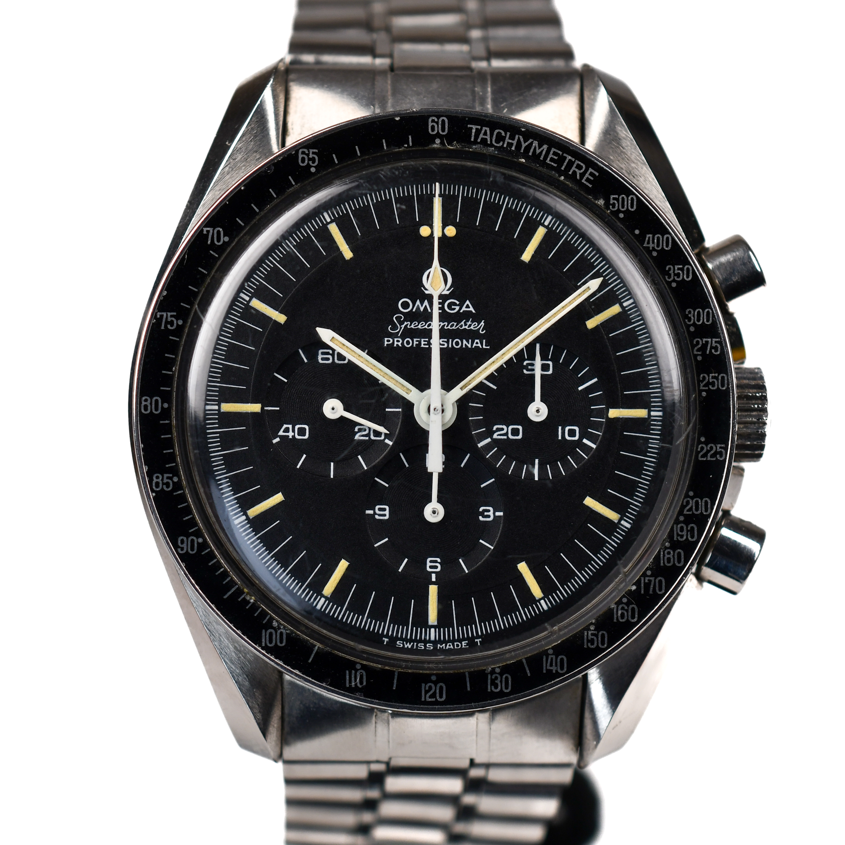 For auction is a very rare 1970 Omega Speedmaster Professional 145.022-69 Apollo XI Straight Writing in exceptional condition on 1116 bracelet. The Good: 1. Condition throughout is GREAT; bezel/case/dial/bracelet and caseback are all very very good collector grade. 2. True Apollo XI straight writing; I've read that there were only 300 (not sure I believe that) but whatever the amount made it is clear they are really very rare. Caseback is in great shape with most enamel still present. 3. Working and functioning correctly, +15 seconds per day and +270 amplitude. The Bad: 1. Watch only (though on a vintage watch where 98% of them don't have boxes or papers anymore I'm not sure that really qualifies as 'bad')