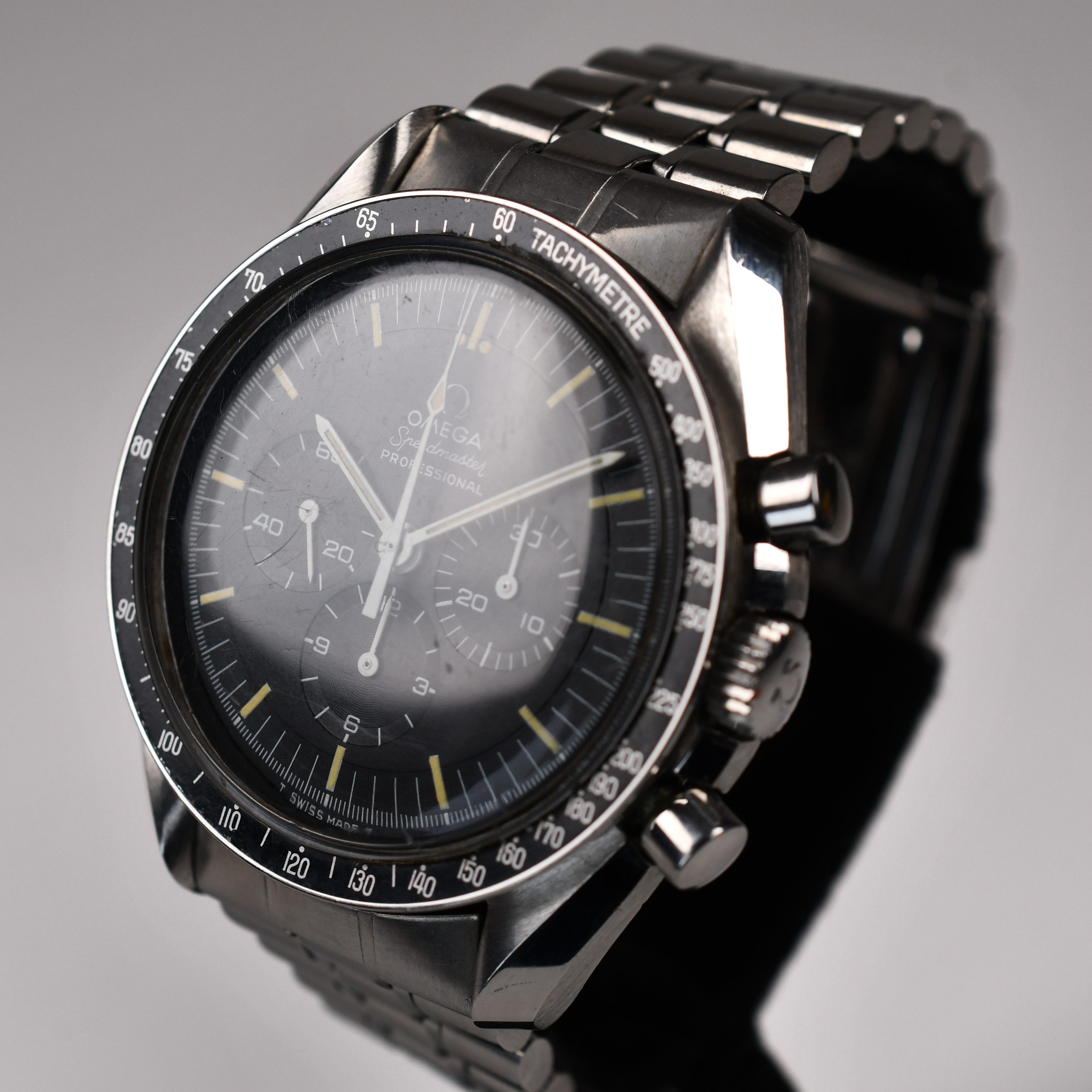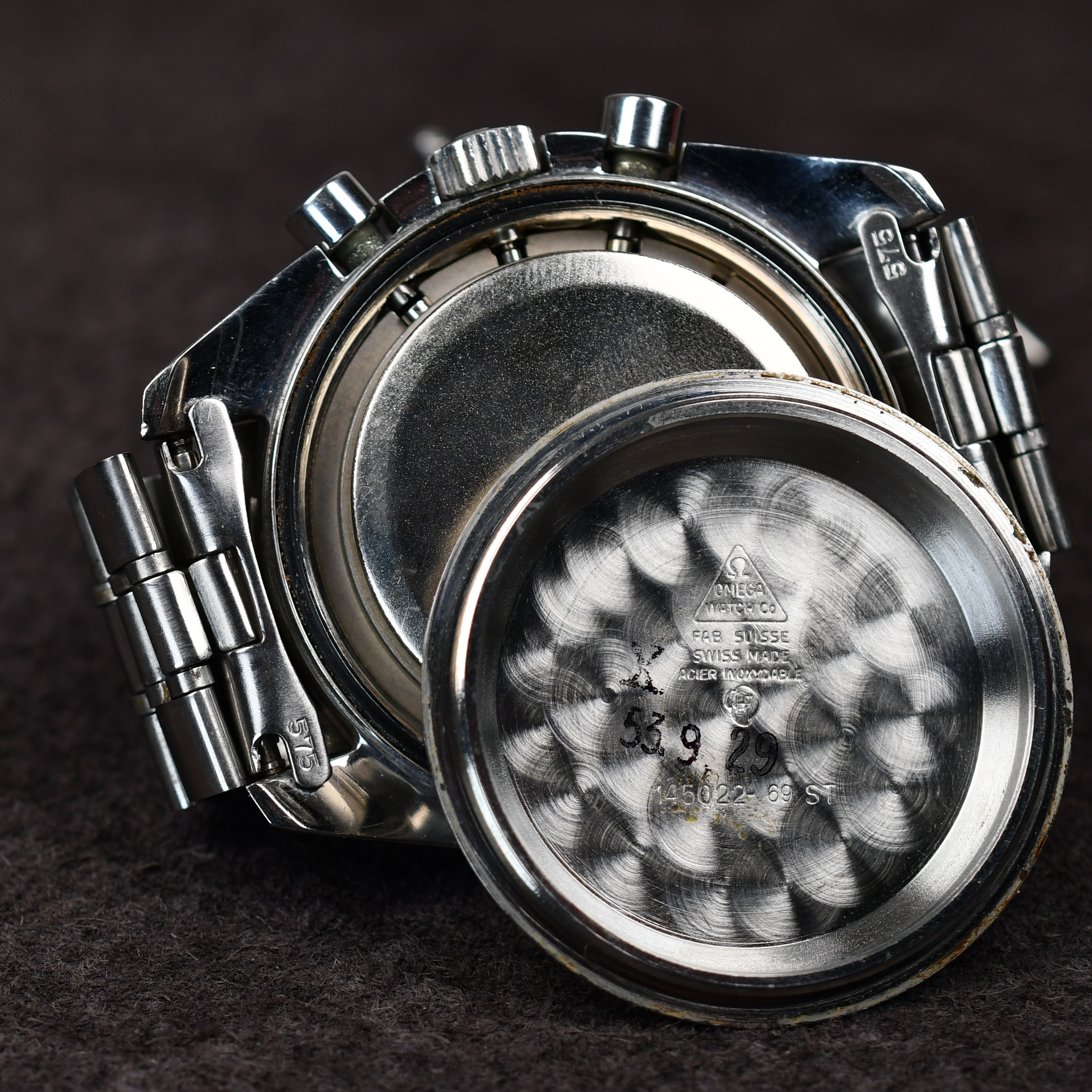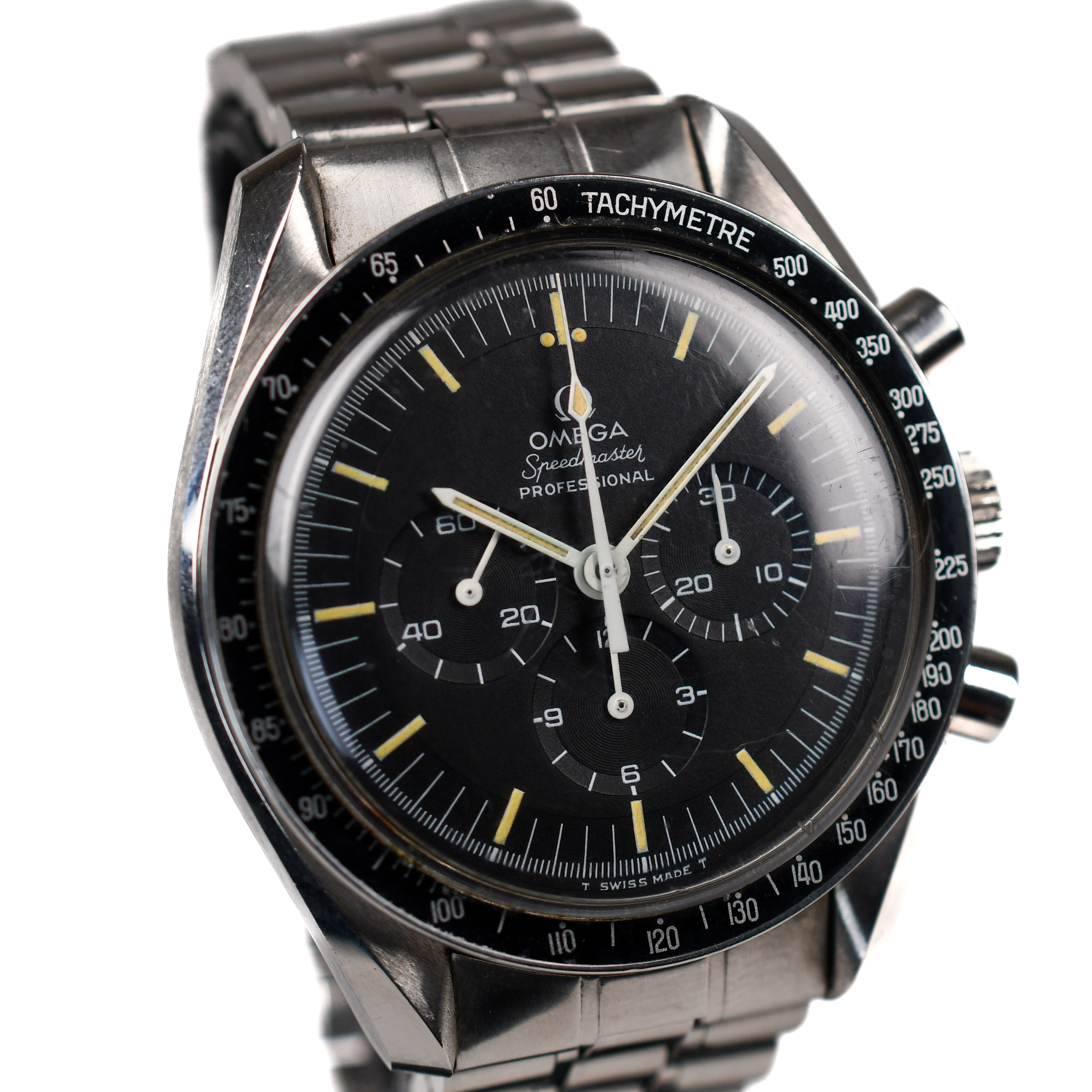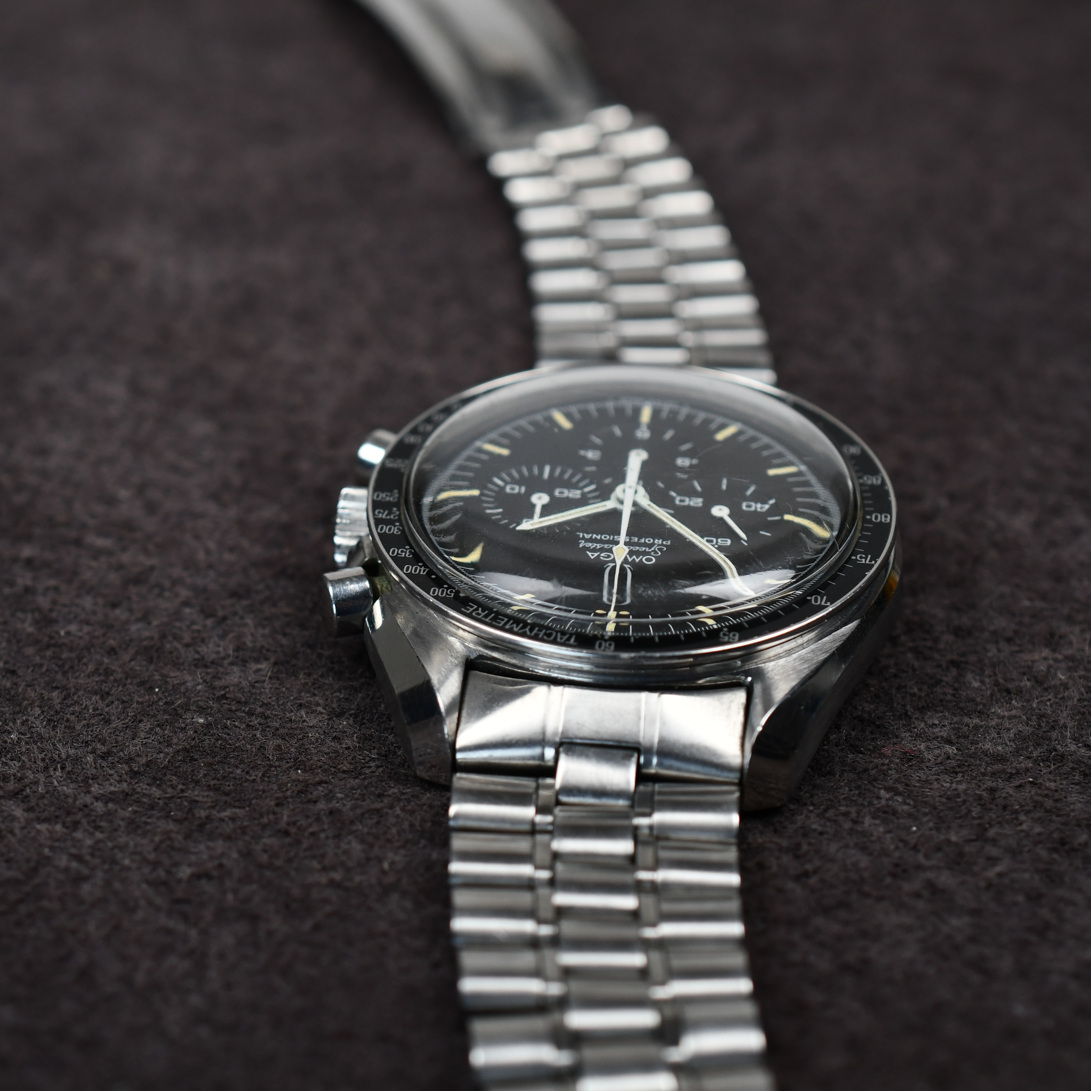 For auction is a very rare 1970 Omega Speedmaster Professional 145.022-69 Apollo XI Straight Writing in exceptional condition on 1116 bracelet. The Good: 1. Condition throughout is GREAT; bezel/case/dial/bracelet and caseback are all very very good collector grade. 2. True Apollo XI straight writing; I've read that there were only 300 (not sure I believe that) but whatever the amount made it is clear they are really very rare. Caseback is in great shape with most enamel still present. 3. Working and functioning correctly, +15 seconds per day and +270 amplitude. The Bad: 1. Watch only (though on a vintage watch where 98% of them don't have boxes or papers anymore I'm not sure that really qualifies as 'bad')