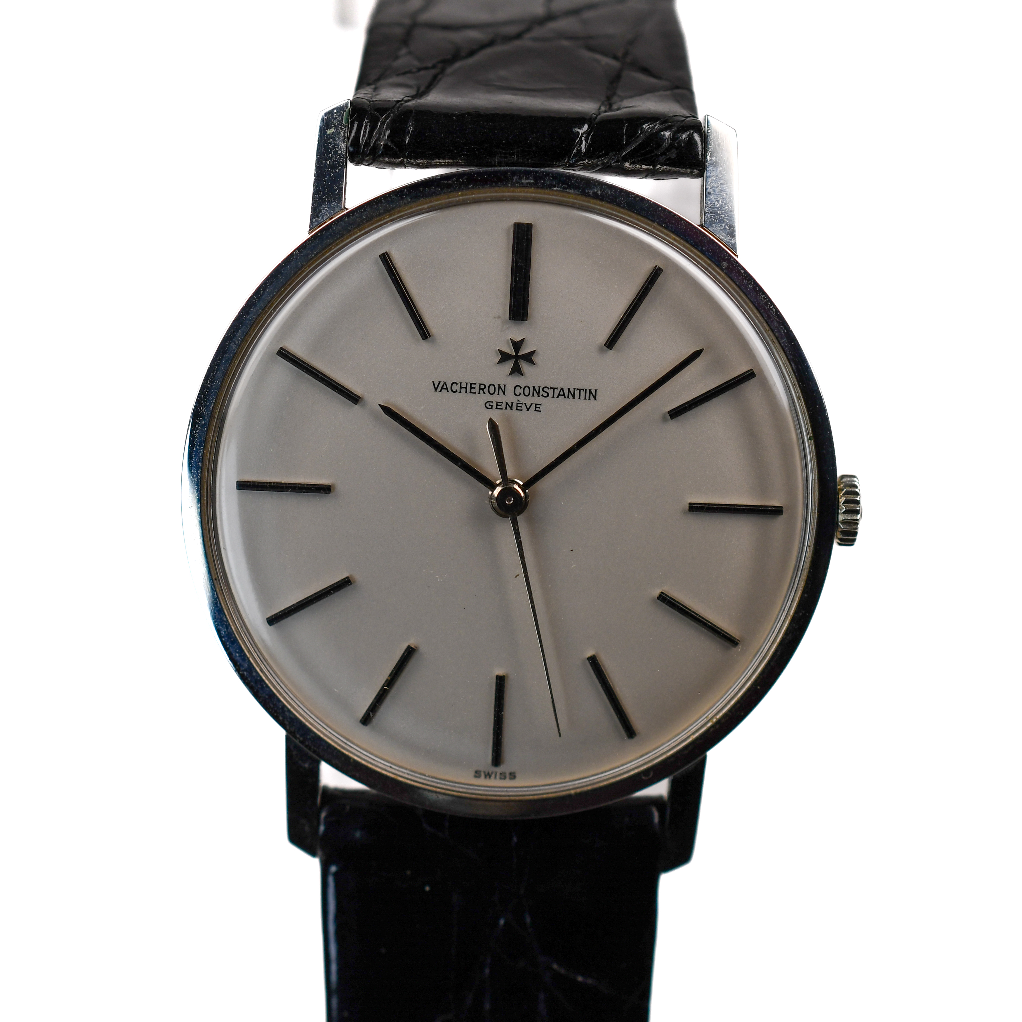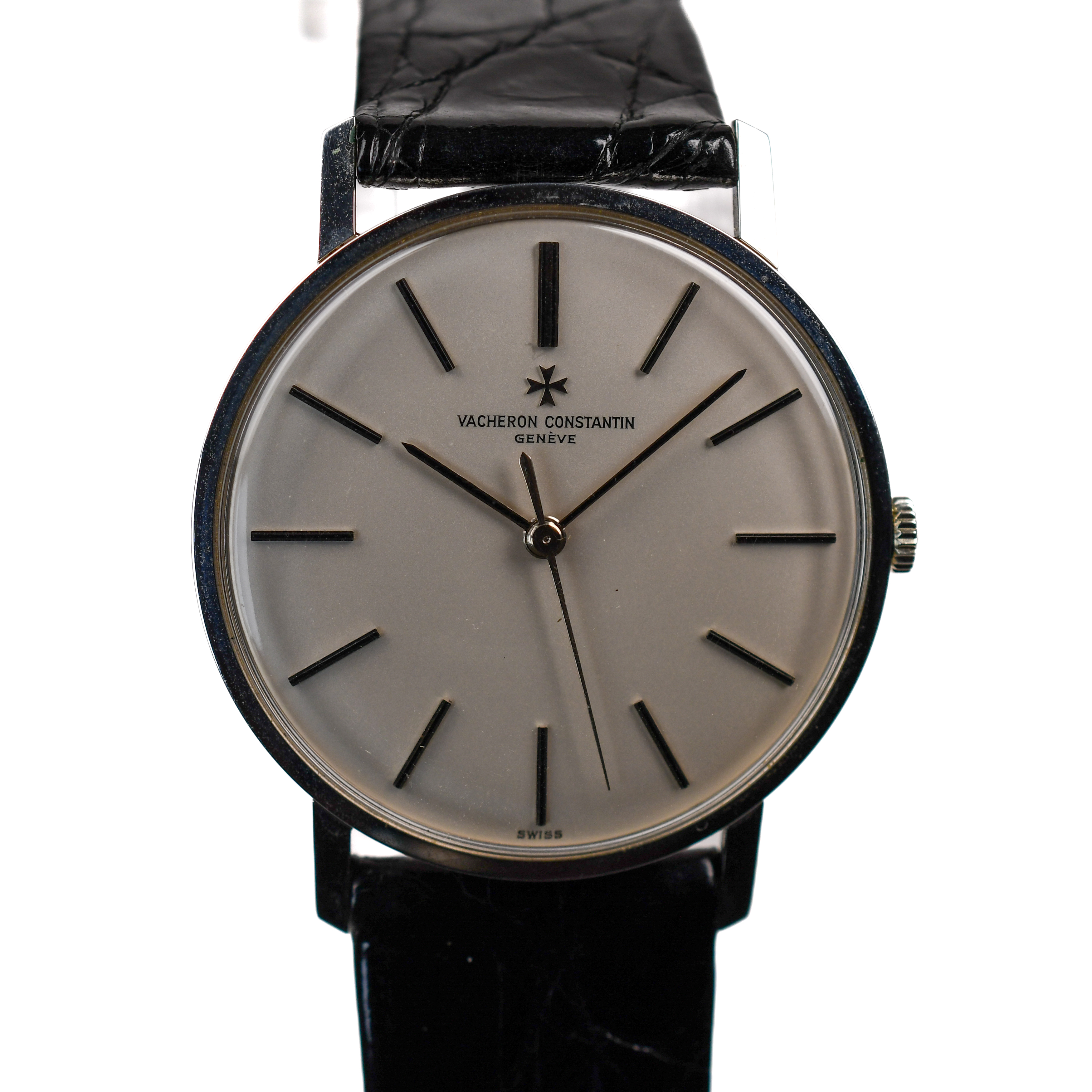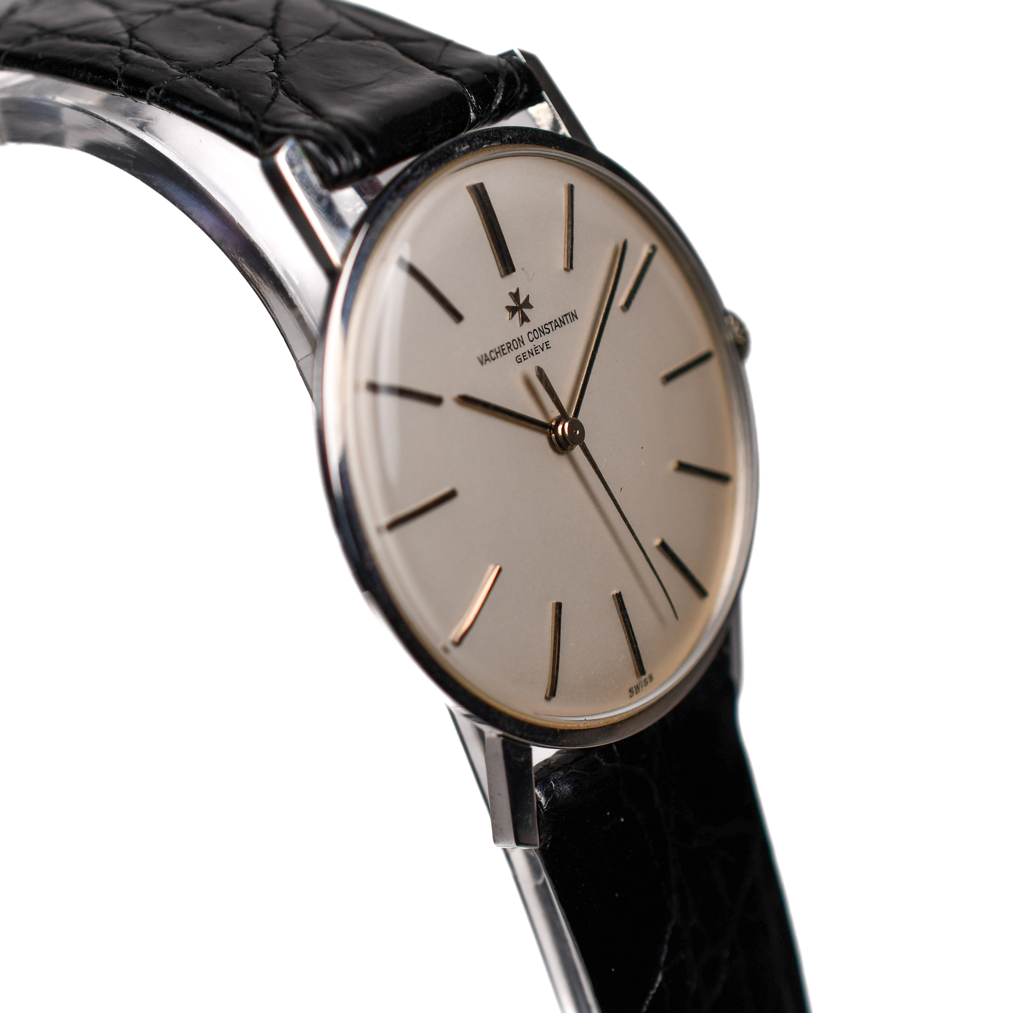 For auction is a 1960's Vacheron Constantin Ref 6563 35mm 3 hands caliber 1002/2 stainless steel condition appears near NOS. The Good: 1. Exceptional condition that feels like new old stock. Unpolished, great original strap and steel tang, perfect dial and case. 2. Large sized steel dress watch with center seconds. 3. Working and functioning correctly, -12 seconds per day and +150. The Bad: 1. Watch only.