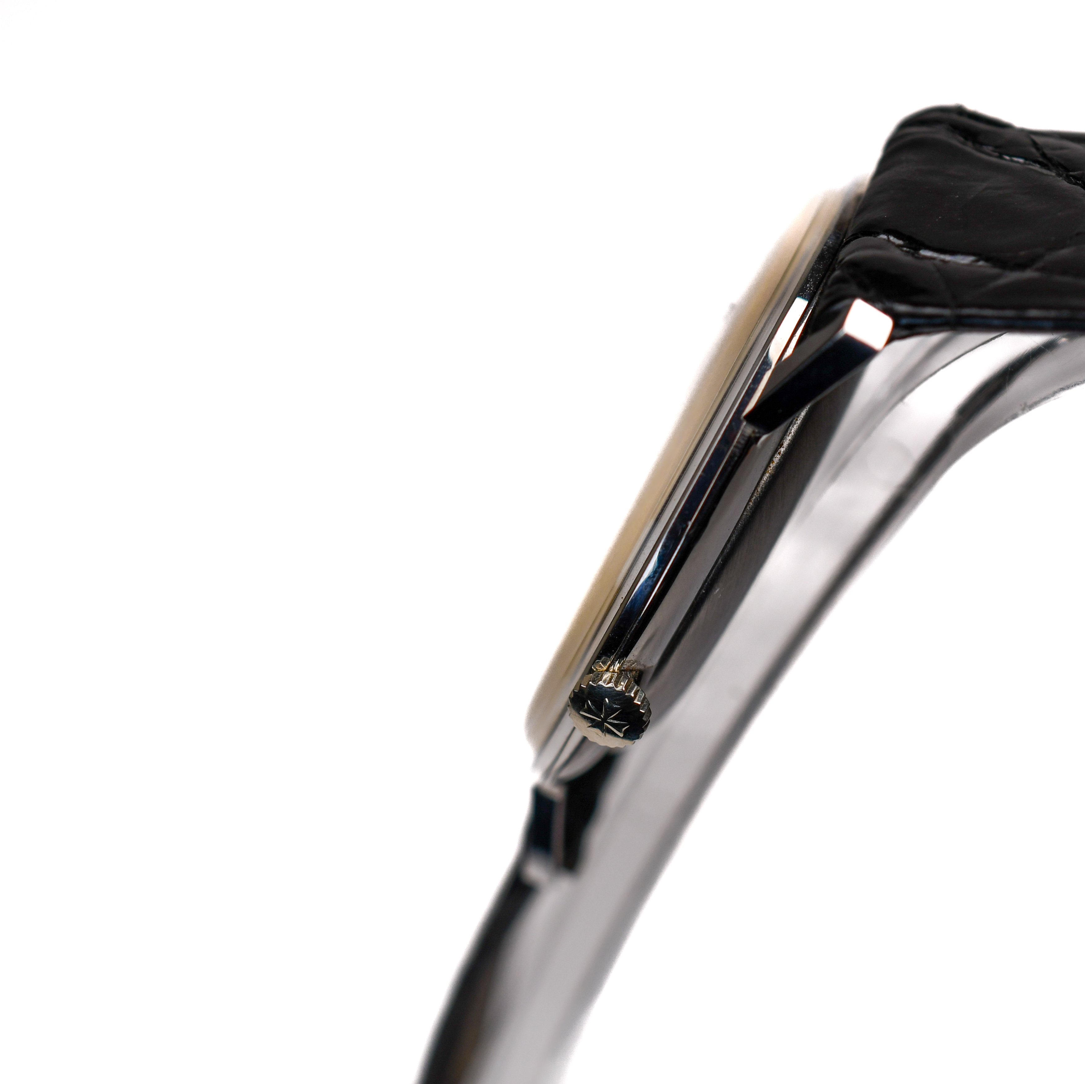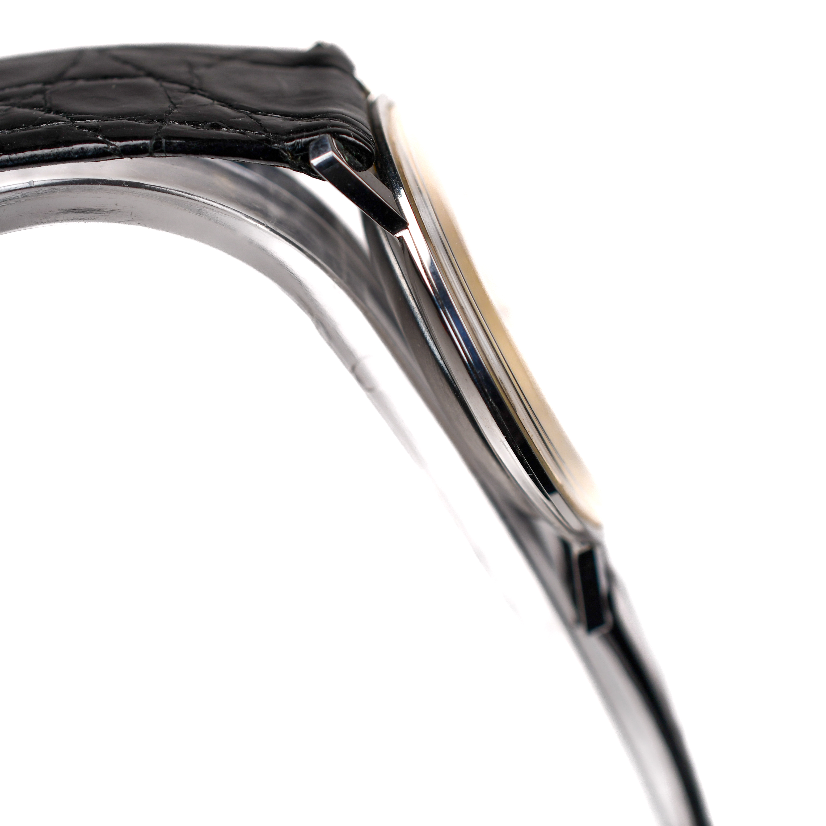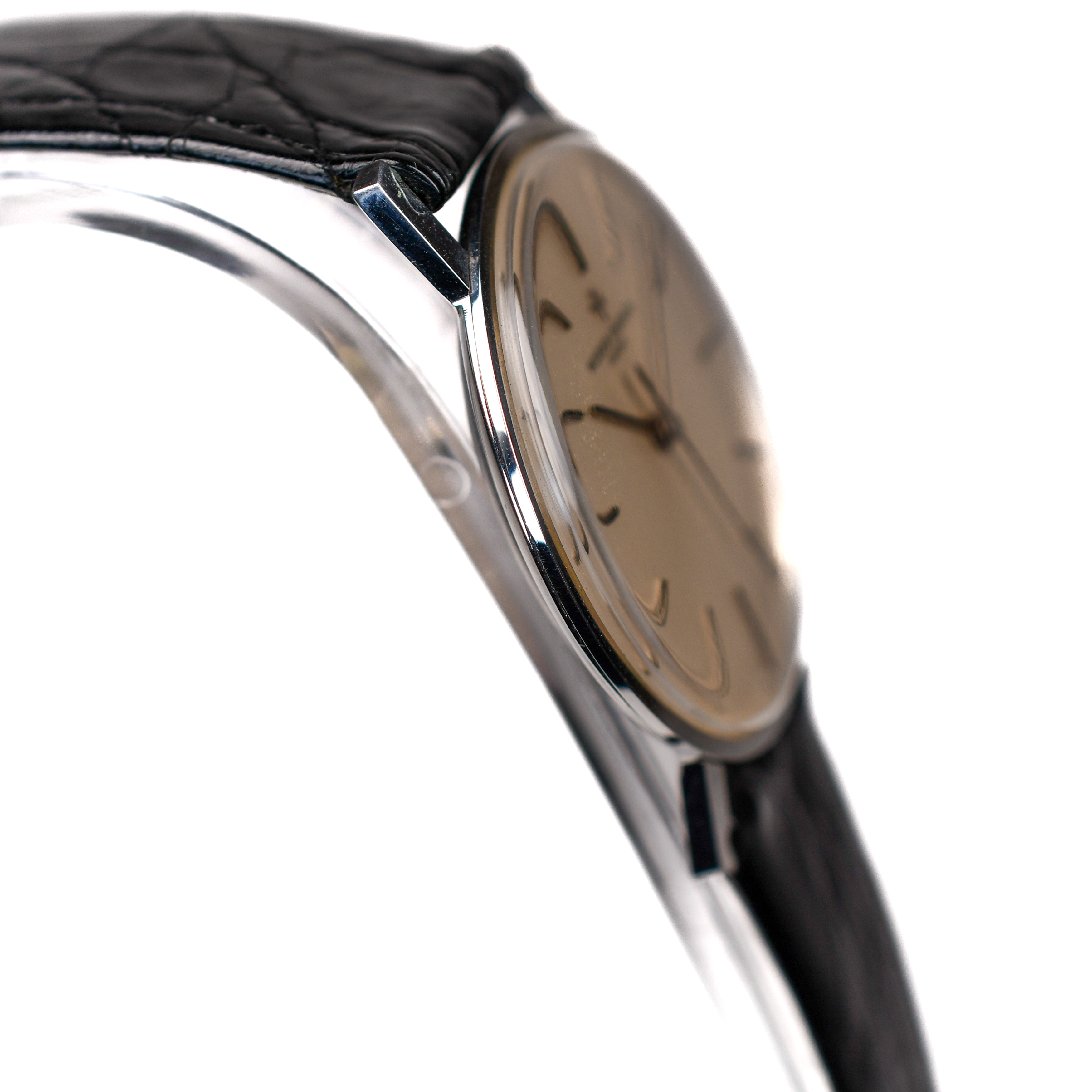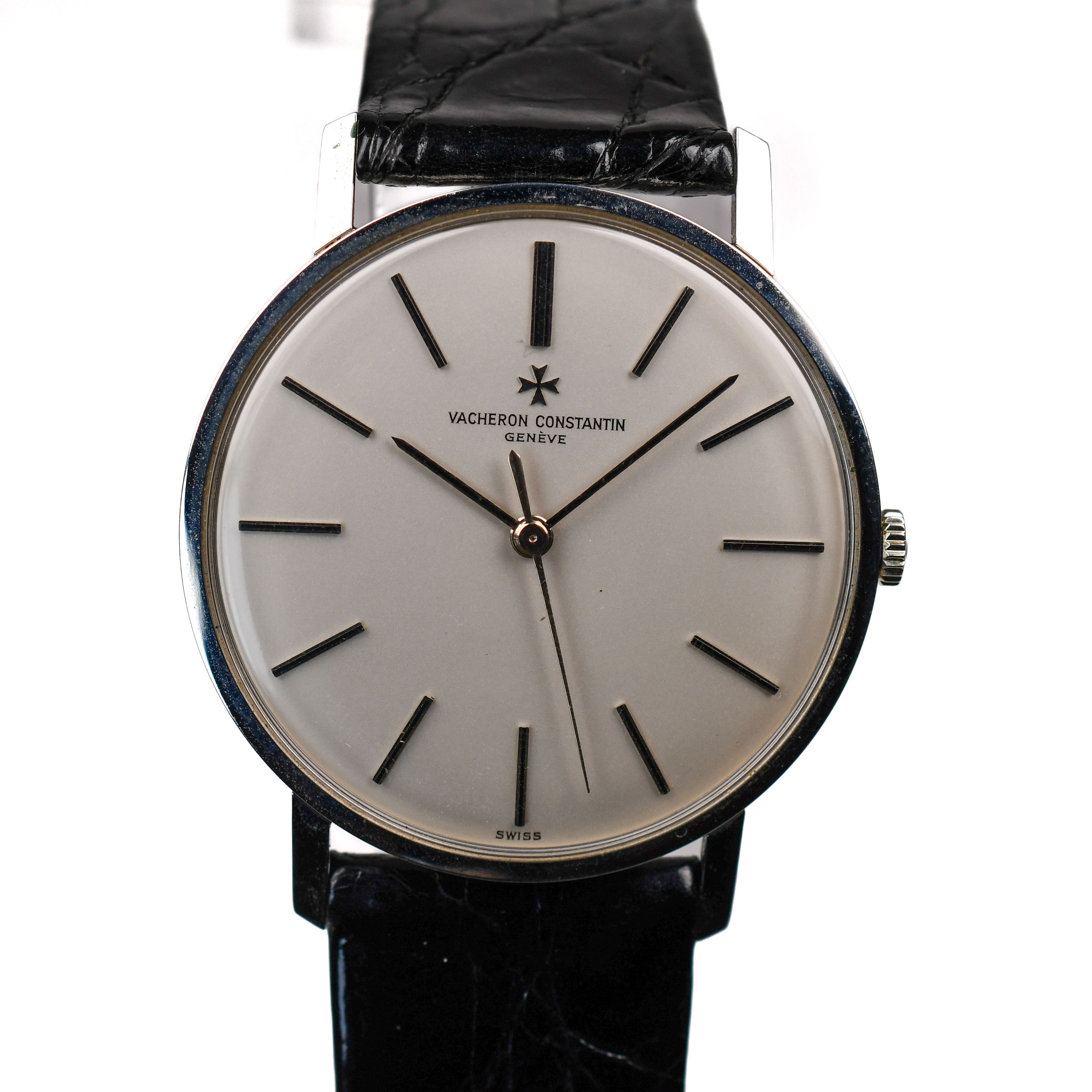 For auction is a 1960's Vacheron Constantin Ref 6563 35mm 3 hands caliber 1002/2 stainless steel condition appears near NOS. The Good: 1. Exceptional condition that feels like new old stock. Unpolished, great original strap and steel tang, perfect dial and case. 2. Large sized steel dress watch with center seconds. 3. Working and functioning correctly, -12 seconds per day and +150. The Bad: 1. Watch only.