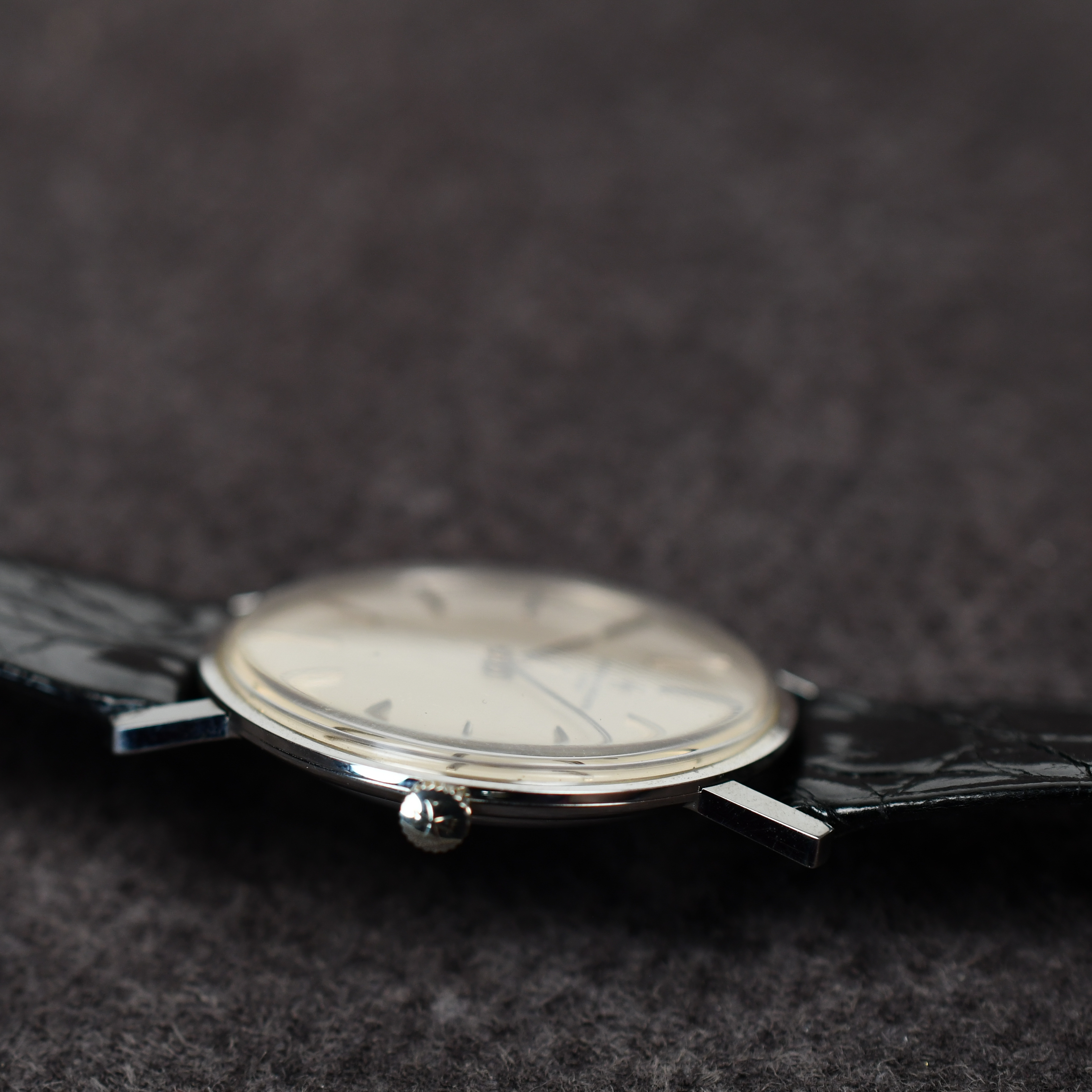 Case: Stainless steel high polished ultrathin case with Maltese Cross signed crown, brushed caseback, appears new old stock condition